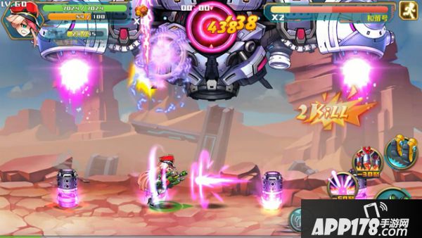 首先是跳跃,虽然是横版游戏,但是我们还是可以上下跳跃移动的,有单独的按键控制跳跃。在攻击方面有按键控制攻击,还有专门的地方控制切换枪械。一圈还有3个技能可以装备,上部还有一个挂载的技能栏,可以点击释放挂载的技能。