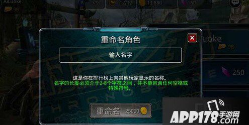 当你厌烦了当前的名字,抑或加入公会需要改名的时候,就可以进行重命名的操作啦~每一次重命名需要花费25000金币,而且名字长度必须在2~8个字符之间,不能包含各种特殊符号。