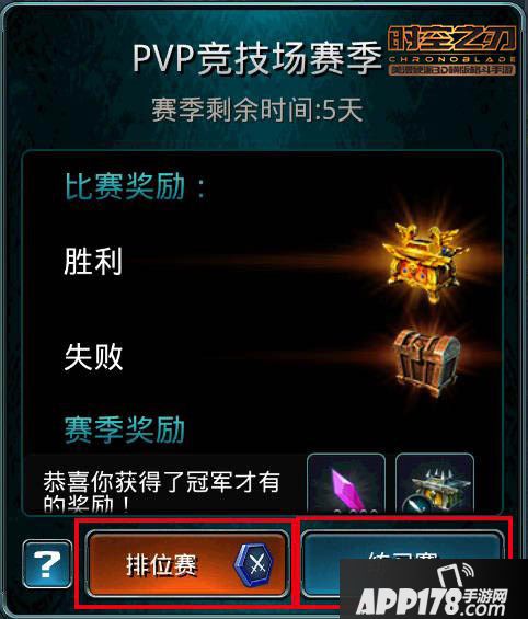 《时空之刃》中每赛季为期7天,每次积分都将清零重计,恢复公平起点。竞技奖励分为两种:赛季排名奖励和单场排位赛奖励,单场奖励包括先锋套装的三件饰品:项链、戒指和指环,而赛季排名奖励则包括:护甲、武器和大量水晶。先锋套装比普通装备多了大量抗性优势,是PVP战斗中不可多得的精品。