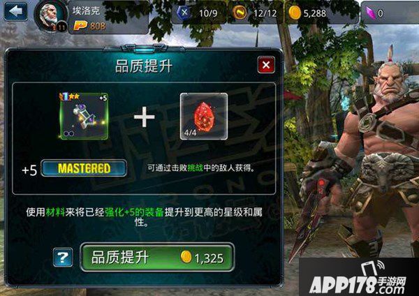 想提升装备的品质,首先需要把这件装备升到满级(5级)之后,再点击品质提升的按钮!