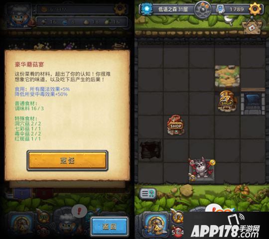 迷宫:迷宫中进两个洞穴拿到两个洞穴菇,boss层可以再获得2个毒菇,马里奥兄弟尸体各一个蘑菇。等集齐食材后,再烹饪豪华蘑菇宴即可。