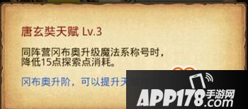 同阵营冈布奥升级魔法系称号时,降低15点探索点消耗。