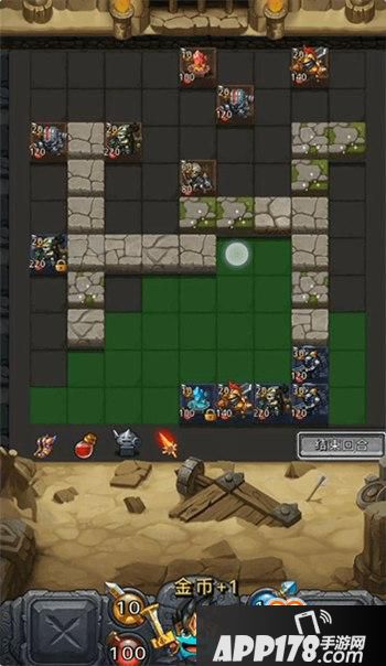 玩法说明 :在这里,当你匹配到对手后,开场随机获得5个小兵出战。 一方行动完后到另一方才可行动,当一方小兵全部行动完到另一方,可以破坏石板获得金币使用英雄技能,最后拆了对方老家获胜。