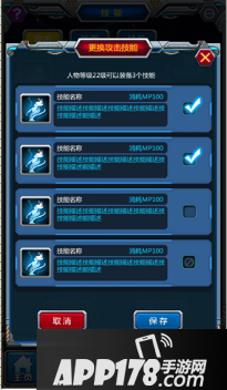 点击屏幕下方“技能”==》点击“已开启新技能空间”按钮可选择技能==》勾选需要使用的技能==》点“保存”==》返回上级界面,点击“上移”可更改技能施放顺序==》设定好的技能和顺序将在打怪过程中自动施放。