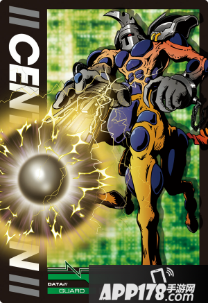 上半身人型,下半身兽型的半兽半人数码兽。身体内部硬化物质浮凸在表皮保护身体,右腕与武器一体化。从背部延伸的管道喷涌而出高压蒸汽,可以瞬间推进,并且可能为接近于音速的移动。具有卓越的防御,攻击和速度。非常高傲,不喜欢受约束和被命令。必杀技是用右臂一体化的武器射击敌人『狩猎炮』。