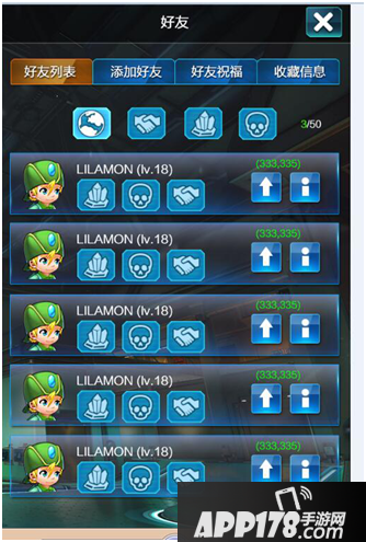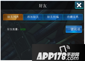 社交系统的界面有三个分页标签,分别是“好友列表”、“好友祝福”、“收藏列表”,好友列表的下方有搜索输入框,贴心的设计可以方便快速找到指定好友,在好友列表里可以收取好友祝福,1祝福=1能量,来而不往非礼也,收取祝福的同时不要忘了给好友们送去每日祝福哦~