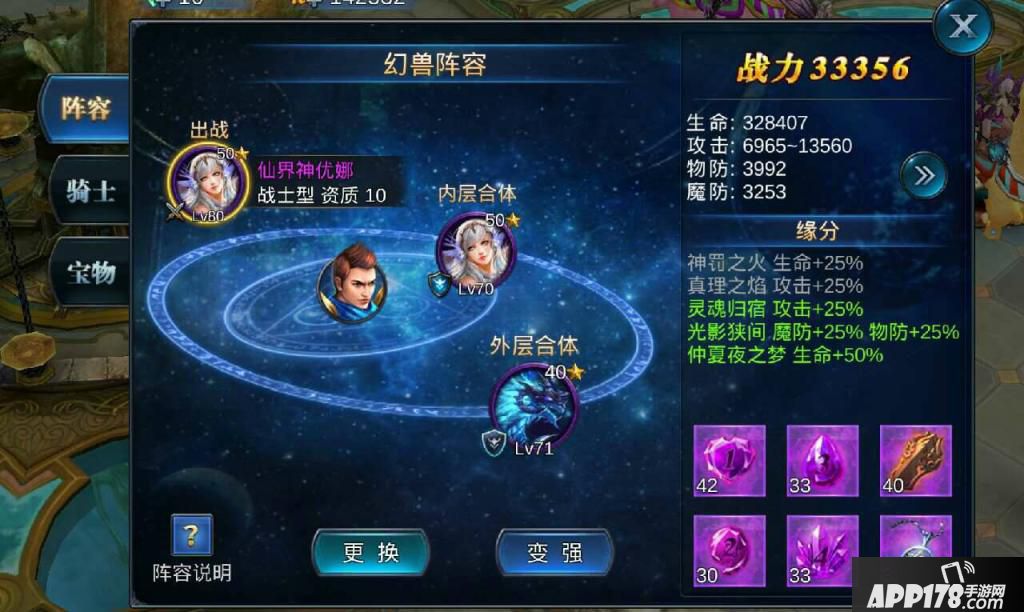 说到这里我们要如何搭配幻兽呢?过副本(2攻一血或者3攻)这里说的攻指的是高攻击型幻兽如天界神,仙界神,魔界神,属于高输出幻兽,血型幻兽冥界龙神,有些玩家要问抽不到啊,怎么办?其实幻兽不需要花魔石,那样很浪费,为什这样说?魔石只要买体力就好,那好的,幻兽怎么来呢?除了抽奖,我们可以通过祭坛刷新获得,而且性价比高无需魔石!什么幻兽都有,不知道有多少玩家这样获得,但我是这样做了,此帖仅供参考希望对大家有帮助。以下附图几张