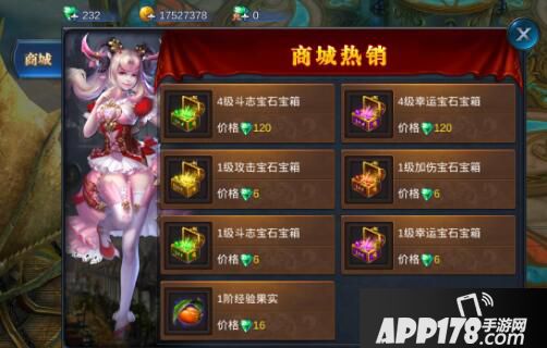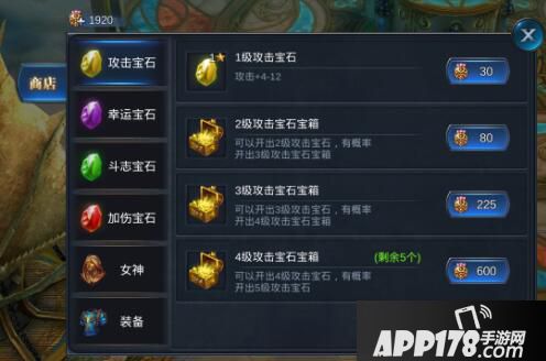 土豪标配的高级选项可以选择合成的等级以及批量合成的合成数量,闭着眼睛选个数,岂不快哉!宝石可以从商城购买1级宝石箱,价格6钻石,物美价廉哟。