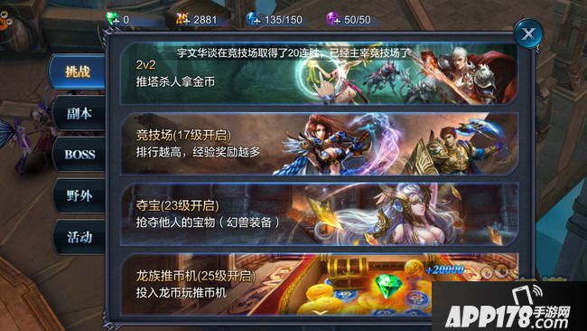 本作拥有当下垄断常规玩法的四巨头:挑战、副本、BOSS和活动,不过它们的实际体验可就和同类游戏不太相同。以挑战为例,既有加入MOBA元素的2v2推塔,也有类似反斗城的推币机小游戏,如此反差想必你闻所未闻;生产材料的副本虽然限定次数,但超高的奖励幅度亦是罕见;而BOSS玩法更是需要历经7层考验,还要击败同时匹配的其他玩家队伍才能得手…可以看出在相近内容上,《神魔圣域》依旧是花了心思想要改变的。