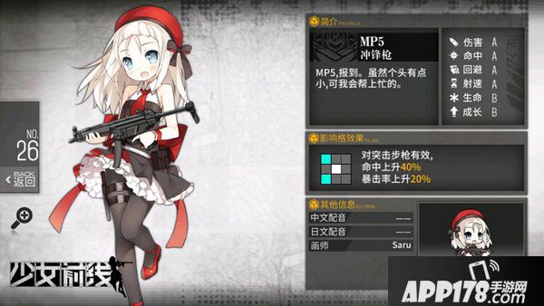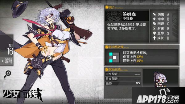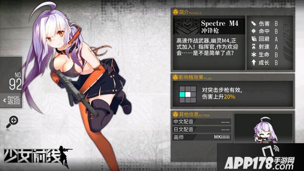 的低星枪娘,主要突出属性也正好是前排适合的回避能力。Spectre