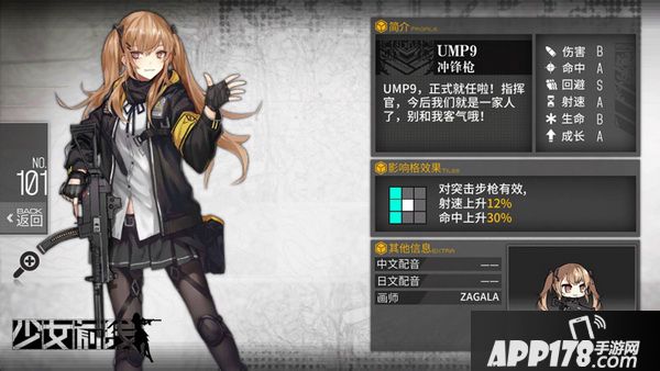 评价,越是到后期,闪避能力越是强大。另外,UMP9的技能属于范