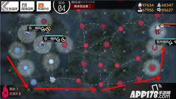 从E2开始,胜利条件均为消灭敌方Boss,其位置有一定的随机性,但总体来说规律也很好总结。本关的Boss只需要沿着最下方的路线,从左至右搜索即可,遭遇Boss的几率挺大。