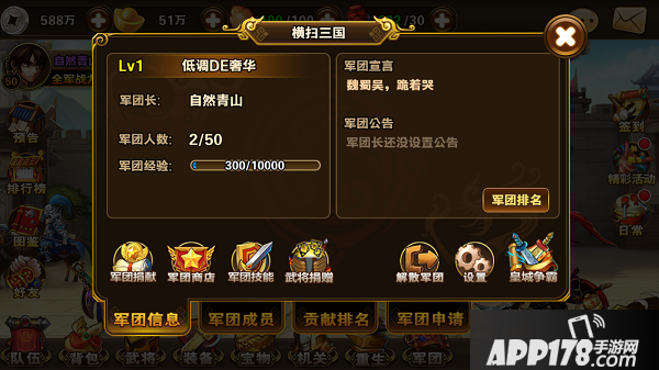 玩家加入军团可以向军团的其他玩家请求武将捐赠。