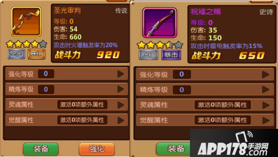 装备通过消耗觉醒水晶对装备进行觉醒,装备觉醒会随便获得属性技能,并且技能能够继续强化;觉醒的同时会获得生命、闪避、暴击等额外属性的大量加成。