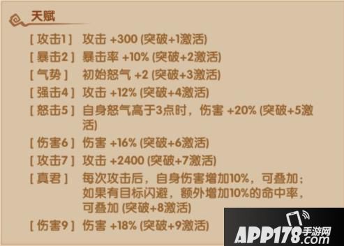 8.真君:每次攻击后,自身伤害增加10%,可叠加;如果有目标闪避,额外增加10%命中率,可叠加(突破+8激活)