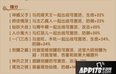 一门三杰:与金吒、木吒一起出战可激活,生命+24%、防御+24%
