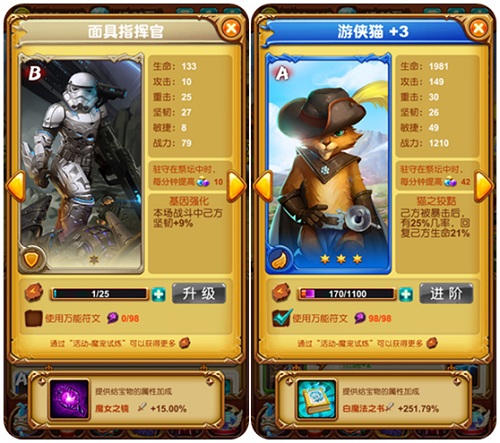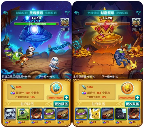 祭坛可从魂石、金币、圣光三个方面加速勇者冲关速度,但祭坛等级达到8级时就将面对其他玩家的掠夺,为了守护好应得的利益,需要组建一个强力的魔宠阵容,这就得了解每个魔宠的技能及与其他魔宠的搭配了。