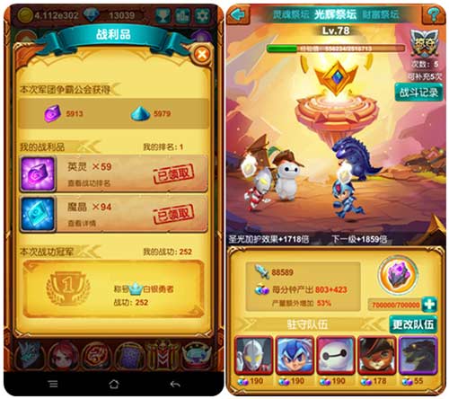 随着军团争霸战的全面启动,公会成员迎来了一大波福利,战斗结束后公会成员论“功”行赏,收获英灵和魔晶奖励。英灵的出现将解锁魔宠等级束缚,玩家可通过英灵提升魔宠资质,召唤传说的SS级神卡,不论是征战天梯、矿场争夺或是祭坛守护,都将给你带来前所未有的畅爽体验。