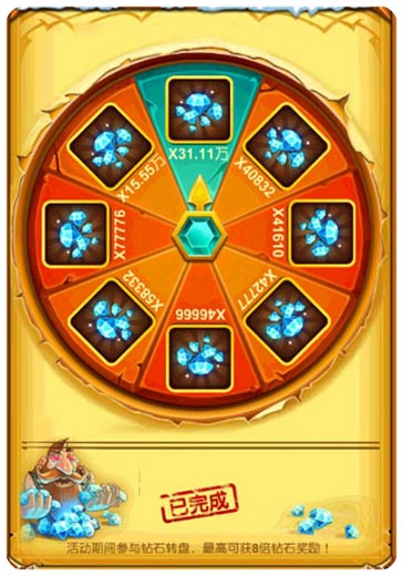 怎么赌才不亏本?钻石转盘让你稳赚不赔。活动期间,玩家每次消耗一定数量的钻石赚取钻石奖励,可赢取消耗钻石数量以上的钻石,最高八倍返还,在这场输不了的钻石博弈中,玩家最终累积可有机会免费获得300000钻石,你敢赌吗?