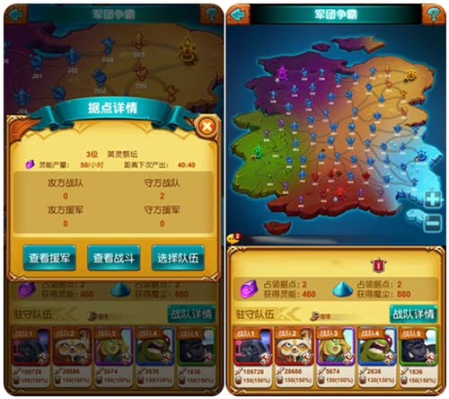 在军团争霸中,面对功能各异的据点,进攻才是最好的防守。合理的进攻策略和阵容搭配可将魔宠战力发挥到极致,率宠出征,不论成败都会收获相应战功,此外还能消耗敌方士气,为公会战的全面胜利打下坚实基础。战斗结束后的英灵奖励,可让魔宠突破等级限制,成倍提升战力。