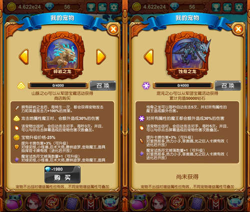 此次更新过后,除了宠物可以进化之外,还有一个非常振奋人心的改变:原来只能通过钻石购买的宠物都可以通过材料进行合成,使用的材料就是相应的进化材料, 这对大家来说是不是一个福音?原本可望而不可及的宠物,现在有了合成获得的途径,咳咳,相信各位勇士一定按耐不住心中的激动了吧。