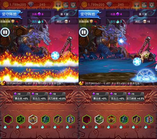 “坚守阵地”虽然是靠宠物进行闯关,但是宠物除了可以自行攻击外,升级属性与使用技能还是需要各位勇者手动进行的。在属性升级方面,很多勇者一开始会先升级攻 击力,这里告诉大家,其实一开始应该多升级“法力掉落率”。这样在后续的闯关中,才会有大量的法力供我们使用。一旦有了法力的支持,各种技能狂轰乱炸,绝对打敌人一个措手不及。