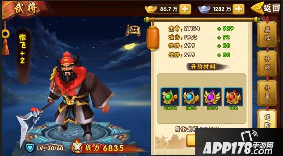 对当前品质的武将进行进阶,可提高基本属性,进阶达到一定数量后,可提高品质。