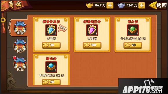 神将商店也会出银两,经验丹和进阶道具这些日常消耗物品。如果缺的话,神将商店也可以买一些。将魂不足的话,可以在锻造室中将一些不用的武将进行分解,可以换到不少的将魂的,或者在竞技场获得。