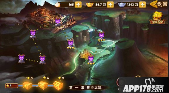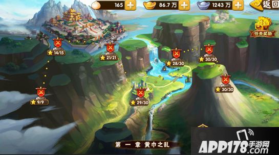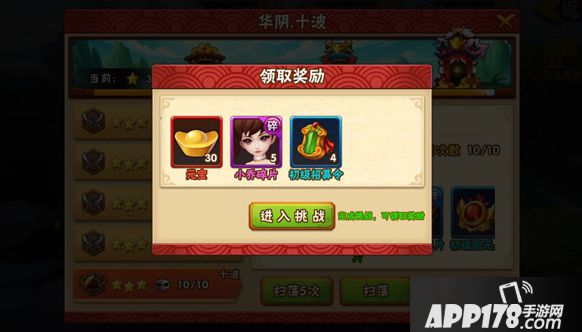 挑战剧情副本中可获得评分星数,评分星数积累到一定程度可开启宝箱奖励关,成功收集箱子后,可开启星级宝箱,星级宝箱中有大量资源,包括武将碎片,大量元宝,招募令等,多多收集武将碎片和装备碎片,这是前期提升战力必要的!