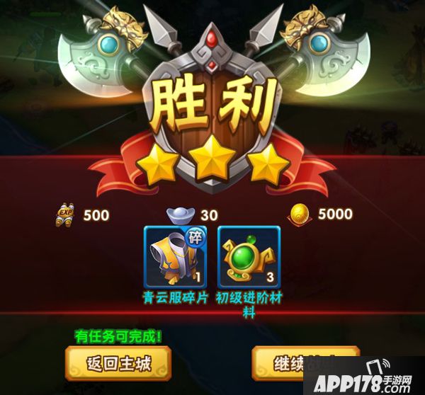 结算奖励根据标准给玩家的当前战斗进行评星,领取奖励。