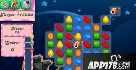 第97关通关要求,在25步之内达到115000分。难度到是不大,主要就是别被有数字的糖果给破坏了。