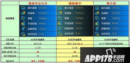 2)重量、节油、能量获取都和突击、猎空一样,加速度略高一丁点;