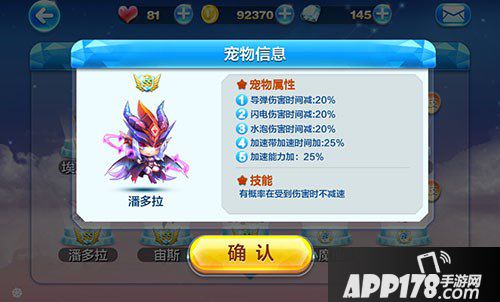 潘多拉对加速带加速时间和加速能力都有加成,同时对导弹、闪电、水泡伤害时间都有减弱效果,技能是有概率在受到伤害时不减速。这个宠物在酷跑模式是没有任何属性的。技能对操作失误次数多的小伙伴来说还是很好的。