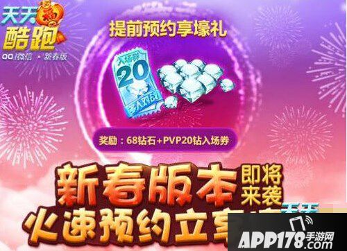 天天酷跑新春版本即将来临,传说此次放出的是很多劲爆消息哦,立刻预约可以分享好礼,预计下个星期就可以更新了!!因为马上快春节了~~一起看看那有什么好东西吧。