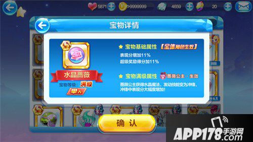 公主领结满级后可在蔷薇公主发动技能后获得高分蔷薇花雨,并提升表现分。这件宝物单独使用,推荐搭配觉醒极地白熊或皇家狮鹫,宠物天照,在破坏获得大量飞星时发动技能直接进入超级奖励,把飞星带入超级奖励吃,超级奖励破坏流的搭配,操作便捷。