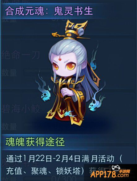 鬼灵书生获得途径:聚魂、锁妖塔等玩法获取该元魂。