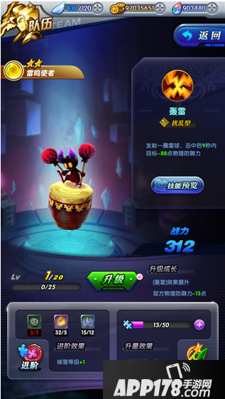 雷鸣使者是开场就陪伴我们的伙伴之一,是一名扰乱型的伙伴。他擅长使用雷电进行战斗,技能轰雷发射一圈电球,降低敌人的物理防御力,使他们更加脆弱,发射雷球的数量不少,可以大大帮助我们进行战斗,是个不可多得的好伙伴。