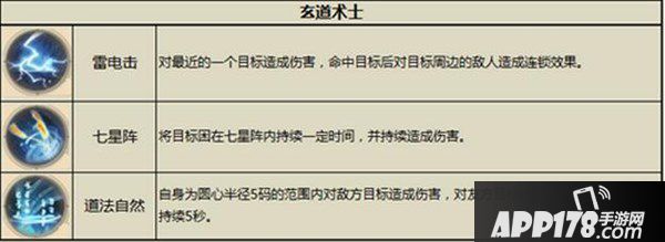 “雷电击”对最近的一个目标造成伤害还可以对目标周边的敌人造成连锁效果;“七星阵”将目标困在七星阵内持续一定时间,并持续造成伤害;同时大招还可以对友方进行治疗,绝对是强力辅助。