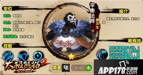熊猫一族中最擅长阴阳平衡之术,虽是与太极武僧和无极剑客一同加入武林联盟成为新入门弟子,但其实力卓越,绝非一般联盟弟子可以匹敌。