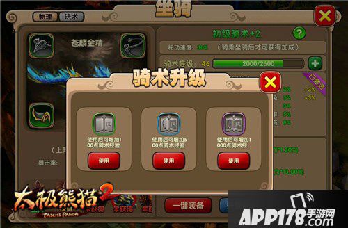 目前《太极熊猫2》中已经开放的坐骑有苍麟金精、烈焰疾风以及蓝色妖姬,而毒芒魔灵、赤炎流火、啸林雷虎这三只坐骑将在后续更新中与大家见面。另外,坐骑装备可以在每日坐骑竞速赛奖励的宝箱中获得,是骑术进阶的必备材料,玩家们可不要错过活动哦!当然,没有时间参与比赛的玩家也不用愁,商城中有专为懒人准备的限时礼包,可以实现骑术快速进阶。更多精彩内容,请关注《太极熊猫2》官方网站及微信公众号!