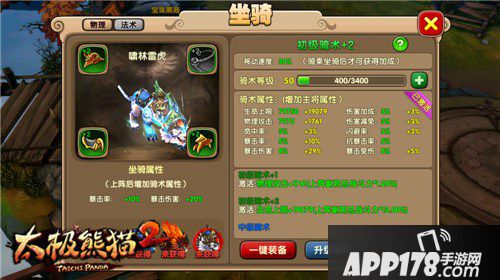坐骑系统作为《太极熊猫2》新资料片的一大亮点,不仅造型酷炫,还能为英雄带来各种属性加成,并提升玩家的移动速度。而针对坐骑设计的竞速比赛也是趣味十足,让玩家体验了另类的竞技乐趣。