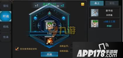 5、 附魂:通过附魂,可以是的装备提升他的主要加成属性,相应的附魂等级越高属性加成越多。