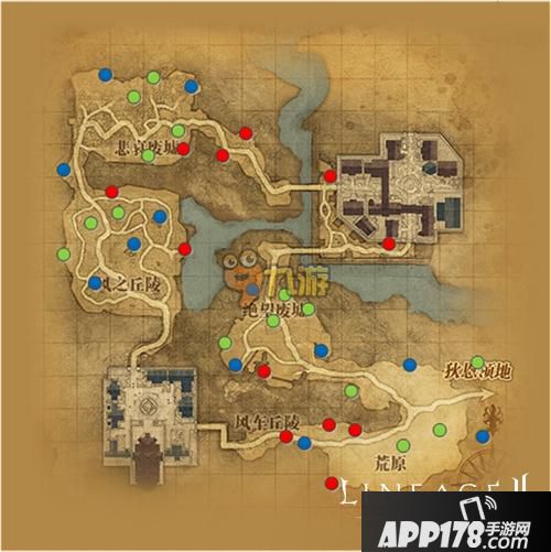往往玩家在野外是偶遇宝箱,这样的几率可非常小的,小编连续7天才遇到一个箱子,不知道是运气差还是姿势不对。于是偷偷向开发人员要了一份藏宝图!下面图中,红色点代表华丽的次元之箱,蓝色点代表精致的次元之箱,绿色点表示朴素的次元之箱。
