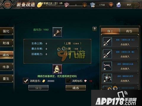 3.选择保存,可以将精炼出的属性累计到装备上。