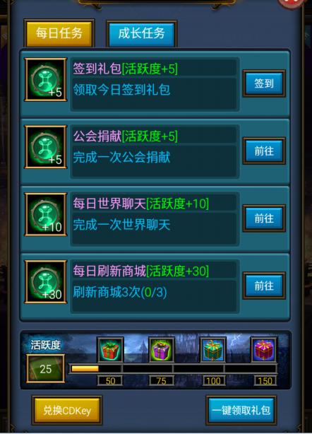 签到礼包 领取今日签到礼包 活跃度+5