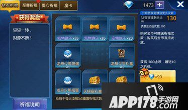 钻石祈福专场的奖励包括宠物饼干,天枰座礼盒,小僵尸礼盒,龙舟少年扭蛋,龙舟少年礼盒。钻石专场的各种道具都是非常实用的道具,像宠物饼干这只道具可是不嫌多的哦,还有很多宠物嗷嗷待哺呢。