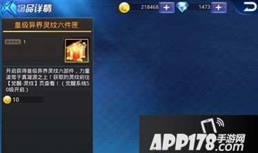 皇级异界灵纹六件匣开启后直接获得皇级异界灵纹六部件,看清楚!这可是六部件!六部件!六部件!重要的事说三遍!皇级异界灵纹力量凌驾于真凝源之上!能增加大量的稀有属性,强化技能增强战力。并且至尊祈福100次必得皇级异界灵纹六件匣哦。