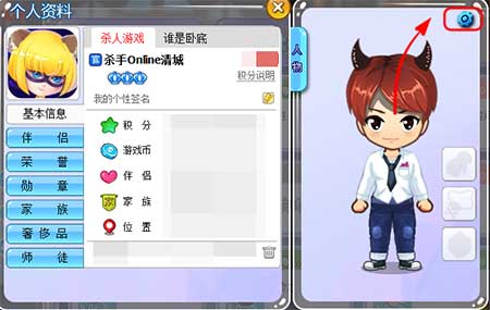 打开个人资料面板,并点击“形象”,找到右上角的“设置”按钮: