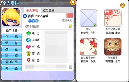 在春节活动“年兽保卫战”中,玩家分为龙队和虎队进行对战,新春个人资料形象背景的获得方式也跟“年兽保卫战”有关!新春高级背景获得方式:新春“年兽保卫战”活动中所在队伍(龙队或虎队)成为伤害总榜第一名;新春普通背景获得方式:新春“年兽保卫战”活动中所在队伍(龙队或虎队)成为伤害总榜第二名;年兽背景获得方式:新春“年兽保卫战”活动中玩家个人在队伍内(龙队或虎队)保护值排名前二十。