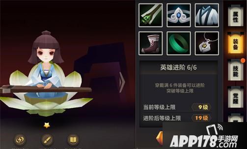 进阶:英雄的装备对其战力有着极大的提升,装备需要通过通关副本获取。当穿戴满全身装备后,英雄即可进阶,进阶后等级上限可提升一个档次。